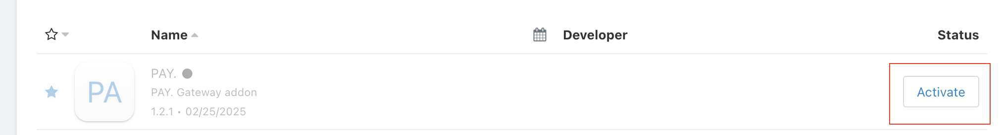 Under Add-ons, click on the name PAY. to open the settings menu, enter your credentials here and click Save