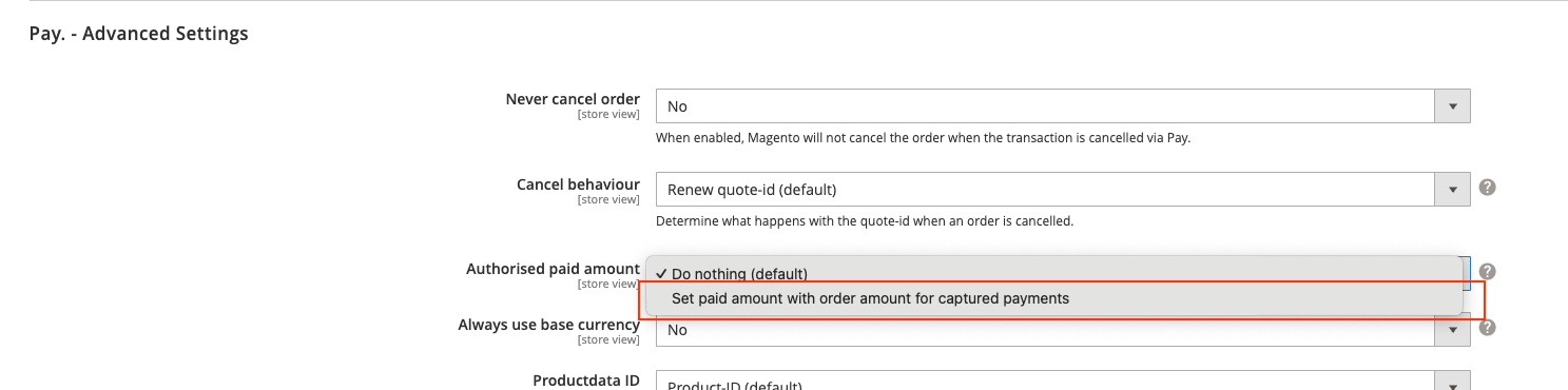 Under Pay. - General Settings we have an **Auto capture **setting which can be set to: