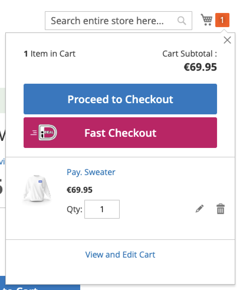 From plugin version 3.14.0 onwards we offer iDEAL Fast Checkout, which shows a button on the (mini)cart and/or product page so a customer can pay for their items with just one click.