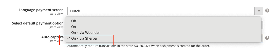 In some cases orders are not processed by Sherpa because the total_paid is not filled. If this is relevant for your situation, you can set the option Authorised paid amount to Set paid amount with order amount for captured payments. You will find this option under Pay. - Advanced Settings.